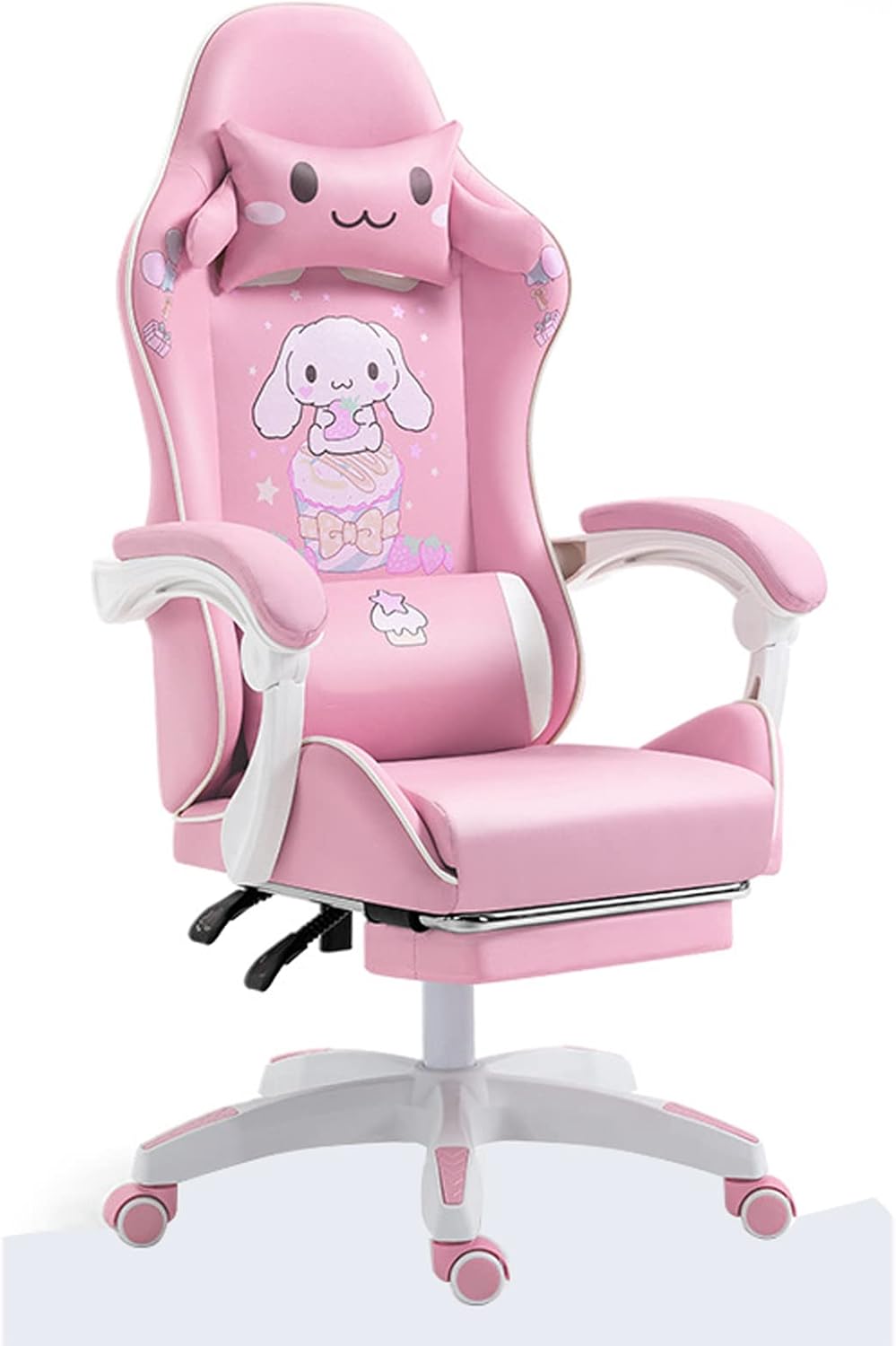 Cccyt Pink Gaming Chair Ergonomic Video Game Chair With Footrest High Back Adjustable Pu Leather E Sports Chair Racing Style Office Chair With Headrest And Lumbar Support Pink Home Kitchen
